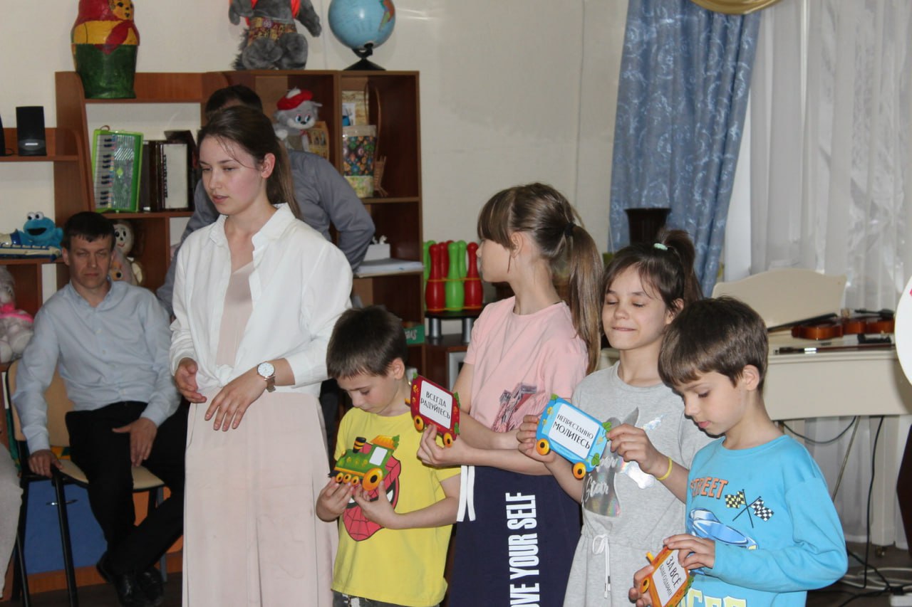 Евангелизация детей на базе церкви. Посещая детей в детских домах, Господь положил на сердце проводить ежемесячные служения, евангелизационные для всех детей (неважно, детского дома они или нет). Мы приглашали детей с улицы, приглашали своих родственников, детей и проводили подобные мероприятия с изучением Писания, чтобы привлекать и взрослых, и детей в церковь.